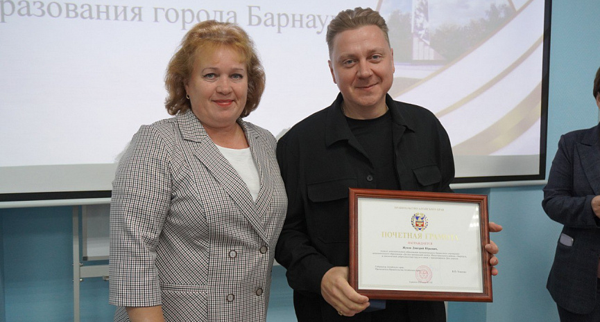 30 сентября на базе центра «Каникулы» состоялось совещание директоров учреждений дополнительного образования города Барнаула, где прошла торжественная церемония награждения педагогов дополнительного образования муниципальными и краевыми почётными наградами. За многолетний добросовестный труд Почётной грамотой Правительства Алтайского края награждён Дмитрий Юрьевич Жуков, руководитель народного самодеятельного коллектива Алтайского края ансамбля народного танца "Тараторки".