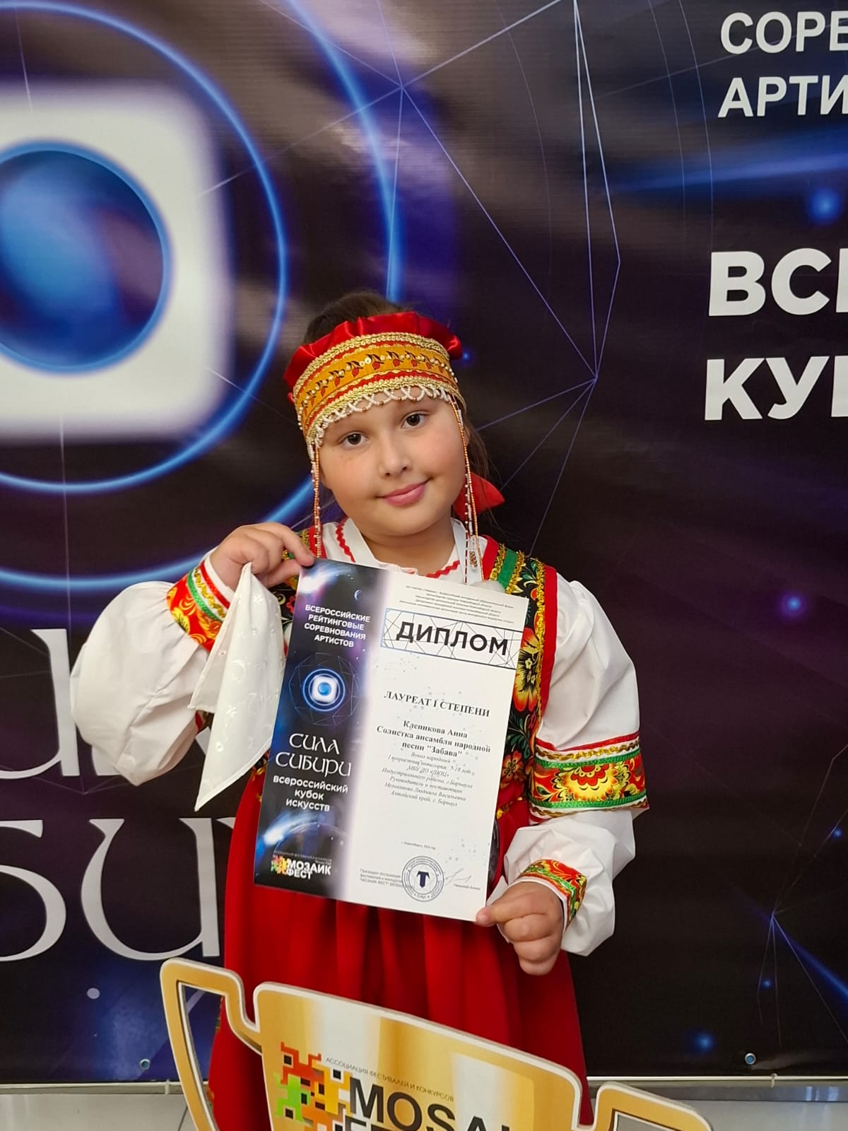 В минувшие выходные учащиеся ансамбля народной песни «Забава» стали участниками Всероссийского кубка искусств «Сила Сибири» в Новосибирске. Этот масштабный проект, при поддержке Министерства культуры Новосибирской области и Департамента молодёжной политики региона, собрал сотни талантливых детей музыкального, танцевального, театрального, оригинального, художественного, кино- и декоративно-прикладного творчества. Юные артисты ансамбля «Забава» достойно представили Алтайский край и показали хороший результат: