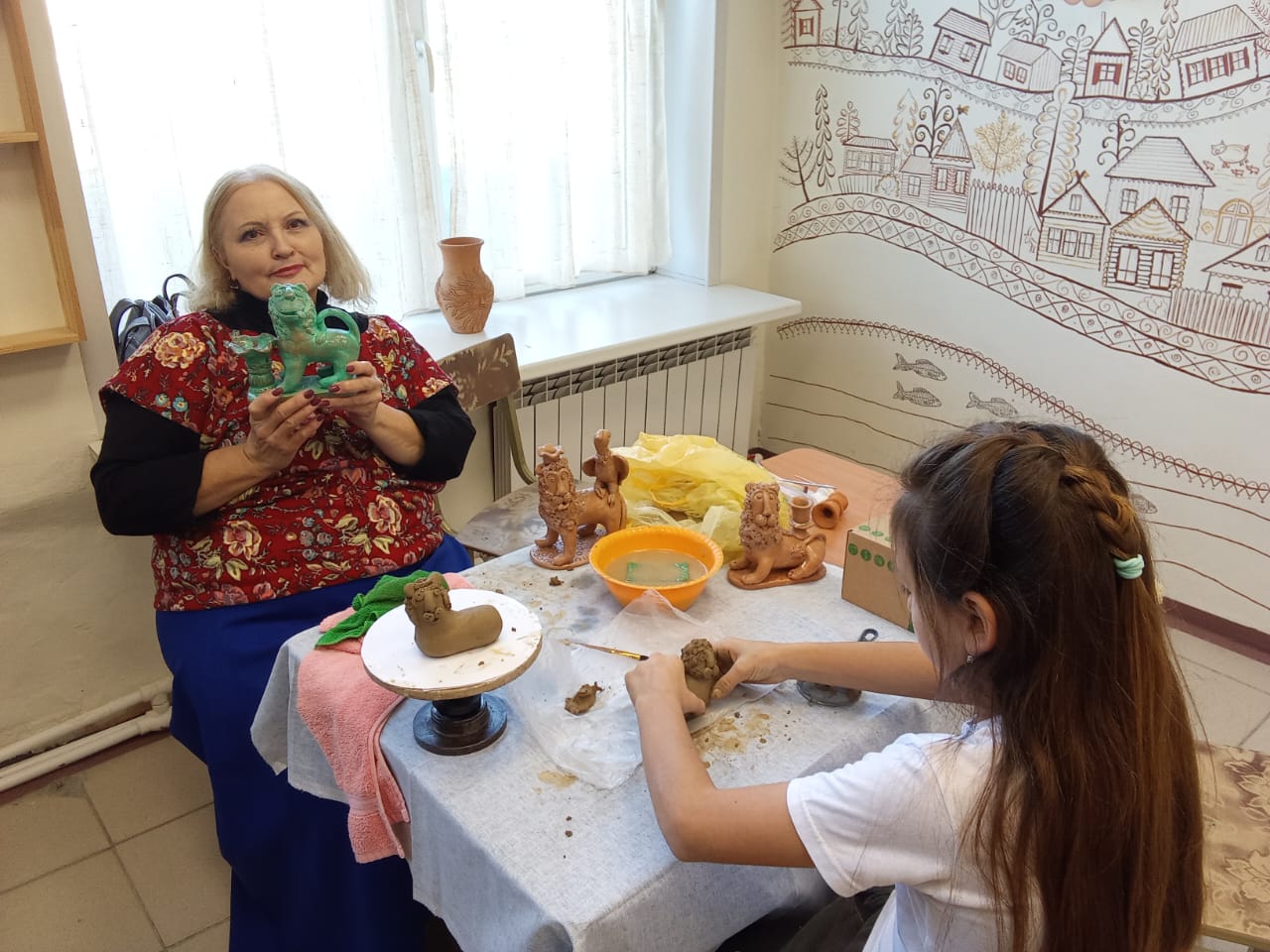 Елена Леонидовна Сафронова, руководитель объединения «Русские узоры» представила два направления деятельности: лепка из глины и Городецкая роспись и стала лауреатом 1 степени в двух номинациях.