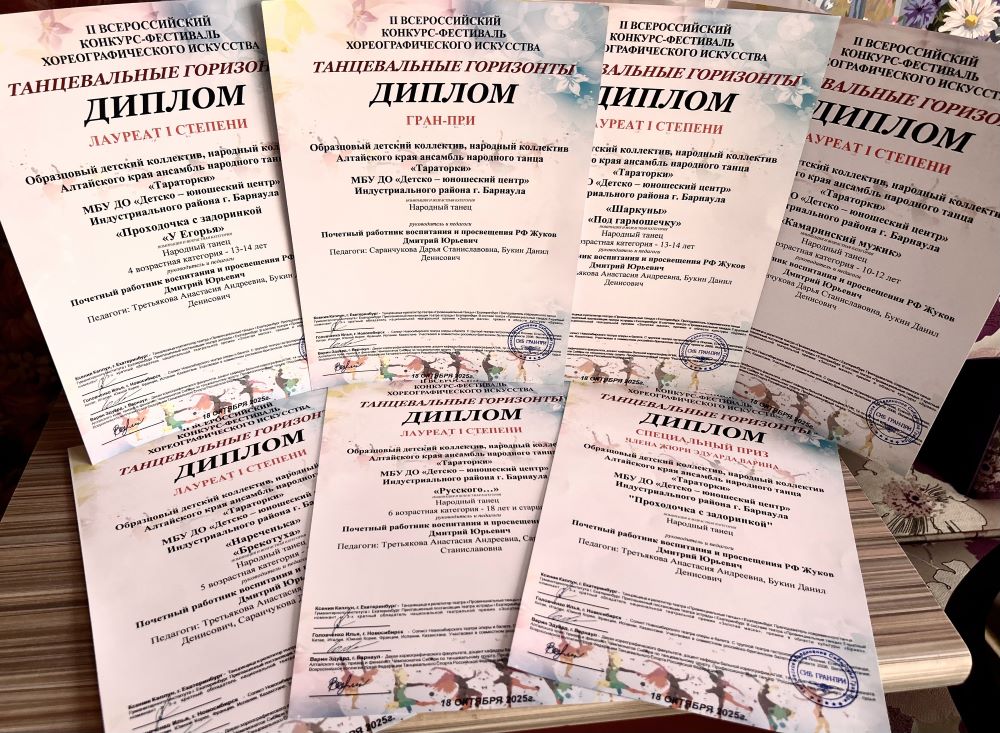 20.10.2025ОБ ИТОГАХ УЧАСТИЯ АНСАМБЛЯ НАРОДНОГО ТАНЦА "ТАРАТОРКИ" И КОЛЛЕКТИВА СОВРЕМЕННОГО ТАНЦА "ПАЛИТРА" В МЕЖДУНАРОДНОМ КОНКУРСЕ "ТАНЦЕВАЛЬНЫЕ ГОРИЗОНТЫ"